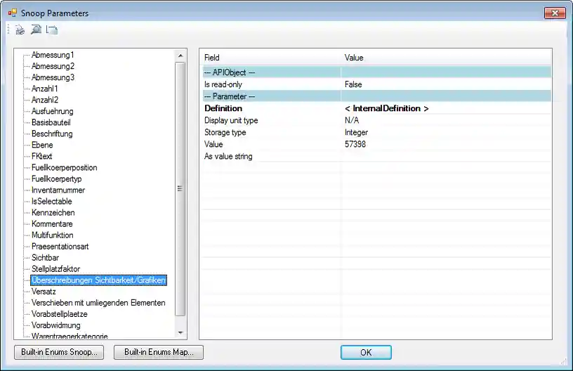 In the following dialog, the parameter is named “Überschreibungen Sichtbarkeit/Grafiken”.